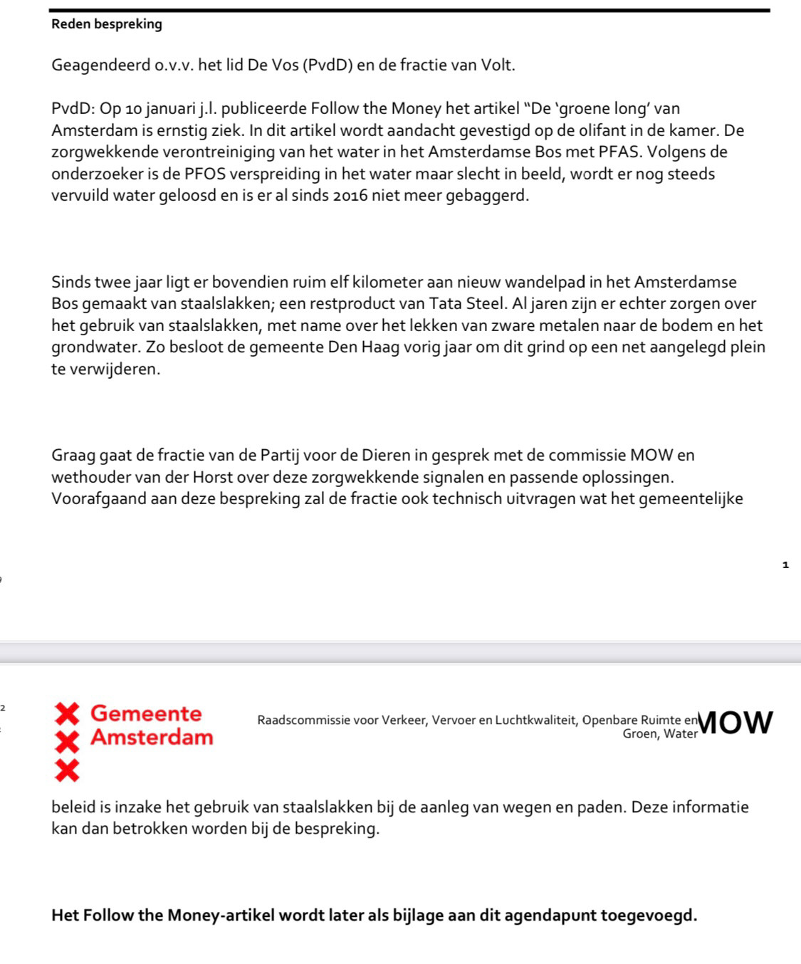 21 februari 2025: Schriftelijke vragen gesteld over pfas/pfos-vervuiling in het Amsterdamse Bos.