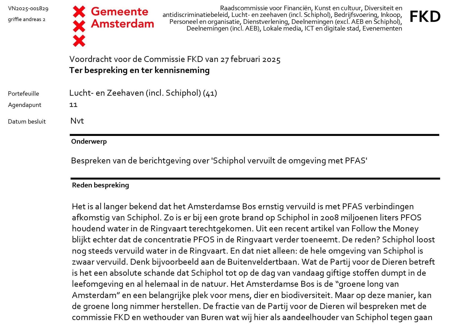 27 februari 2025: Bespreking in commissie Financiën, Kunst en Cultuur van de gemeente Amsterdam.